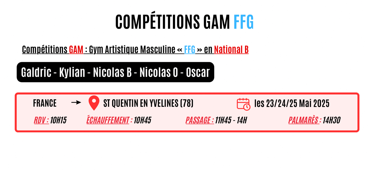 Compétitions GAM en FFG (pour Galdric, Jules M, Jules R et Maxime) :
