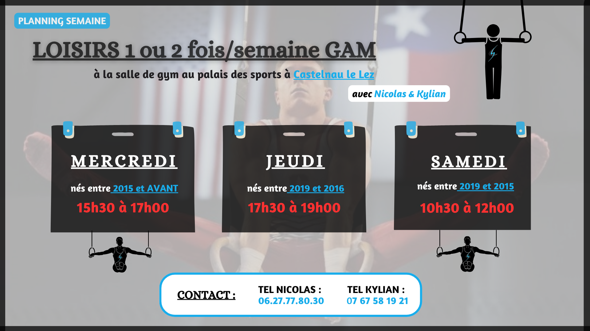 – Loisirs masculins 1 à 2 fois par semaine (contacter Nicolas 06.27.77.80.30)